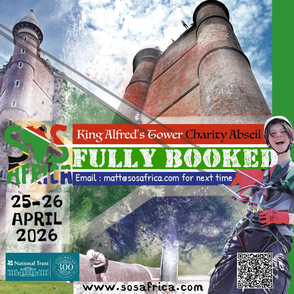 SOS Africa’s 2026 King Alfred’s Tower Charity Abseil event is now fully booked. We will host the event again soon. For priority bookings and event information, please email matt@sosafrica.com.